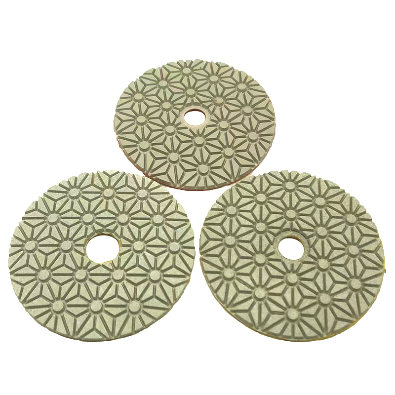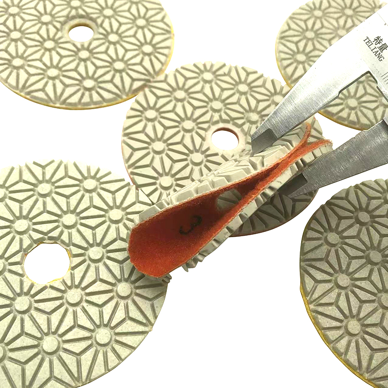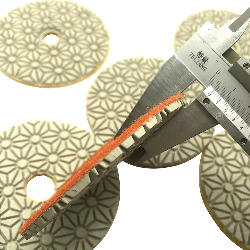 Three steps wet polishing pads has high productivity. Polishing pads are easy to bend and very flexible which it is easy to polishing on all the edge and corner of stone slabs while workers are doing polishing.After completion of step 3 polishing pads, the operator can use the pad again at low RPM with a small amount of water to buff the final product.3 step polishing pads are goods for stone polishing, line chamfer, the arc plate and special-shaped stone processing. Three step polishing pads also be used for processing, repairing and renovating marble, concrete, cement floor, terrazzo, glass ceramics, artificial stone, tiles, glazed tiles, vitrified tiles etc. It will no leave any color on the stones or burn the surface of the stone slabs.