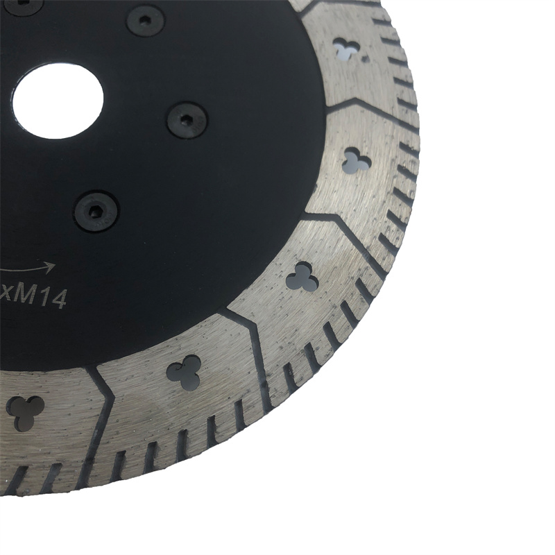 5 Inch Turbo Grinding and Cutting Circular Blades are using on hand grinder machine. Jingstar granite blades for marble and marble has high cutting speed and long life span. This shape of turbo grainder blades are hot pressed with protective segments on the side of blank steel which can protect the blank steel being injured when doing cutting and grinding, it is mainly designed for grinding and cutting for marble, granite, quartz, and another other nature stone. To keep safety, Whenever you are using the diamond porcelain saw blade, please be careful to wearing the eye protector, safety clothing before doing any cutting process.