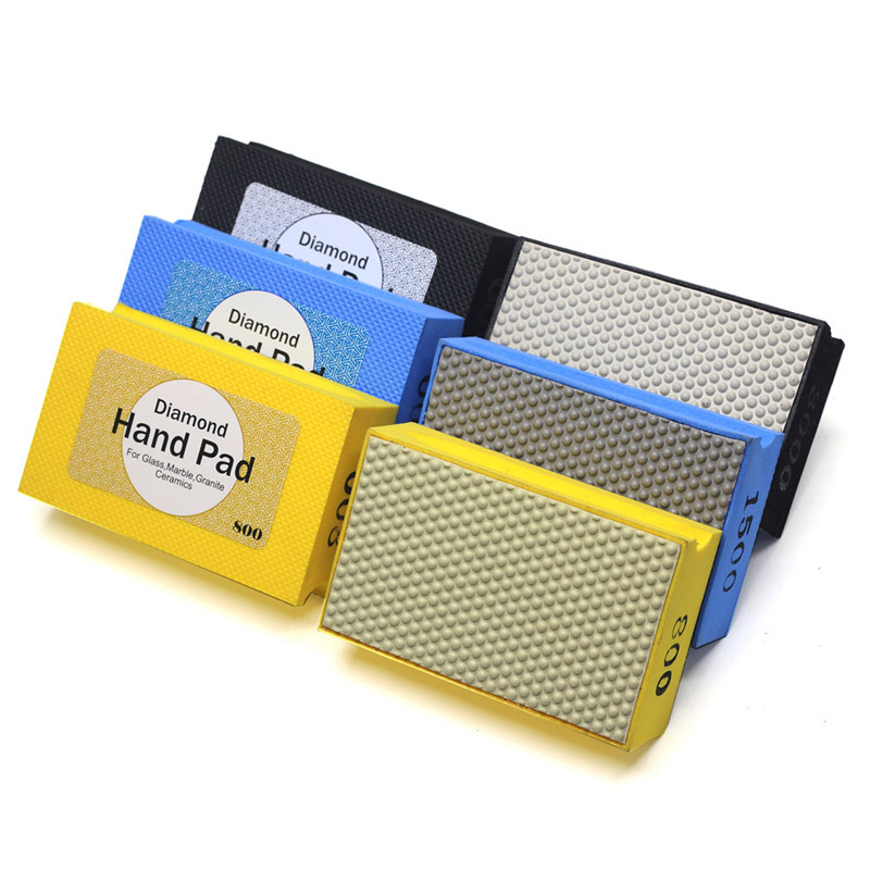 Diamond Hand Polishing Pads Electroplated Resin Pads are widely used for polishing stones,marble, granite artificial stone,quartz, gemstone,glass,ceramic,monocrystalline sillicon,synthetic material,hard alloy,alluminium alloy and etc. Diamond hand pads is with very soft foam back and very flexible when using it, they are perpect working at edging polishing and seaming polishing. Hand polishing strong abrasive product designed to be used for the easy and gloss finishing of shapes and areas that are hard to reach with power tools.Hand polishing pads can be use with water or without water, it can be use with velcro back as well. Hand polishing pads are with very light weight, which is make transportation easier.