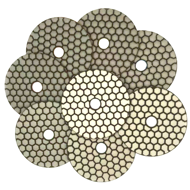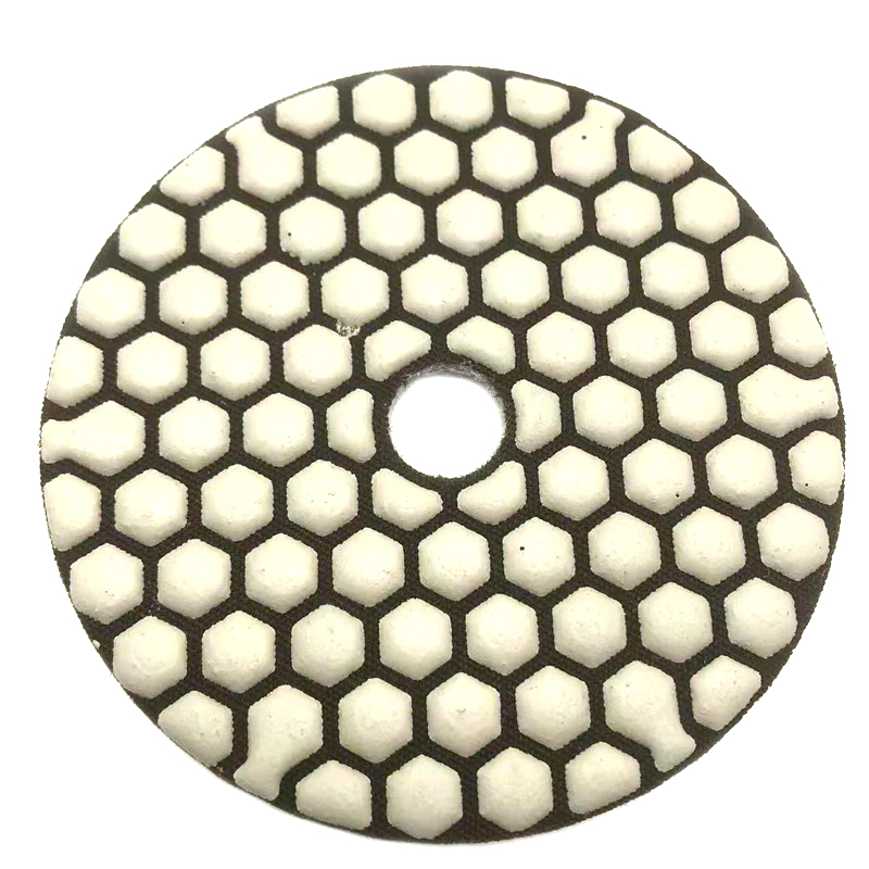 The diamond dry polishing pad is mainly used for grinding and polishing different types of stones. It is a flexible processing tool made of diamond as abrasive and composite materials through special technology and formula. It can be used for special-shaped processing of granite, marble. It is not easy to dye for there is no need to add water in the process of use and can achieve the polishing effect of wet polishing pad. Dry polishing pad has high advantages in saving water resources, especially for the factories where are lack of waters.Dry polishing pads are not only using for marble and granite, but also widely used in polishing for concrete, cement floor, terrazzo, glass ceramics, artificial stone, tiles, glazed tiles, vitrified tiles. Due to the complex manufacturing process, the technical requirements are high. In order to make easy identify the grit size,we have different grit in different colors.